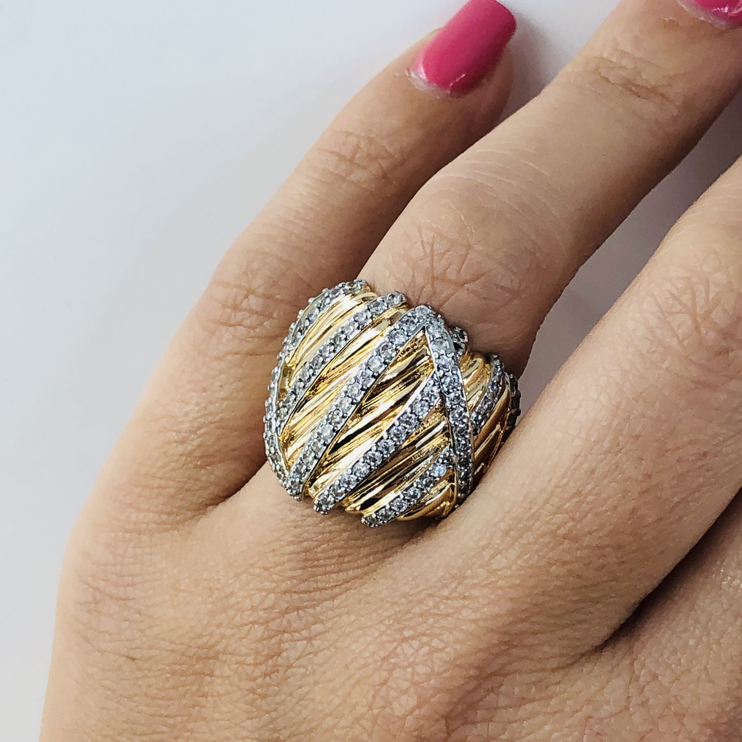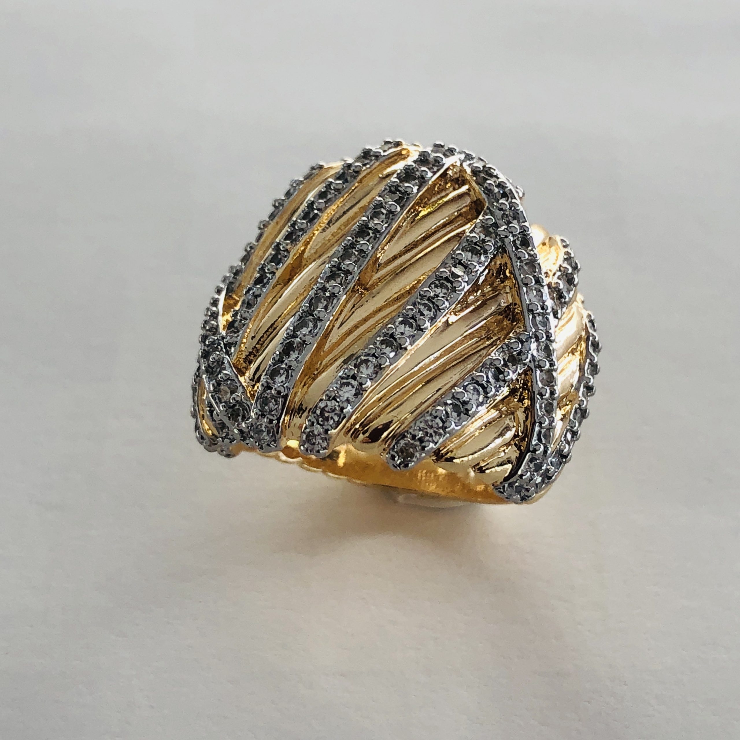Anel banho de ouro com fileiras zircónias