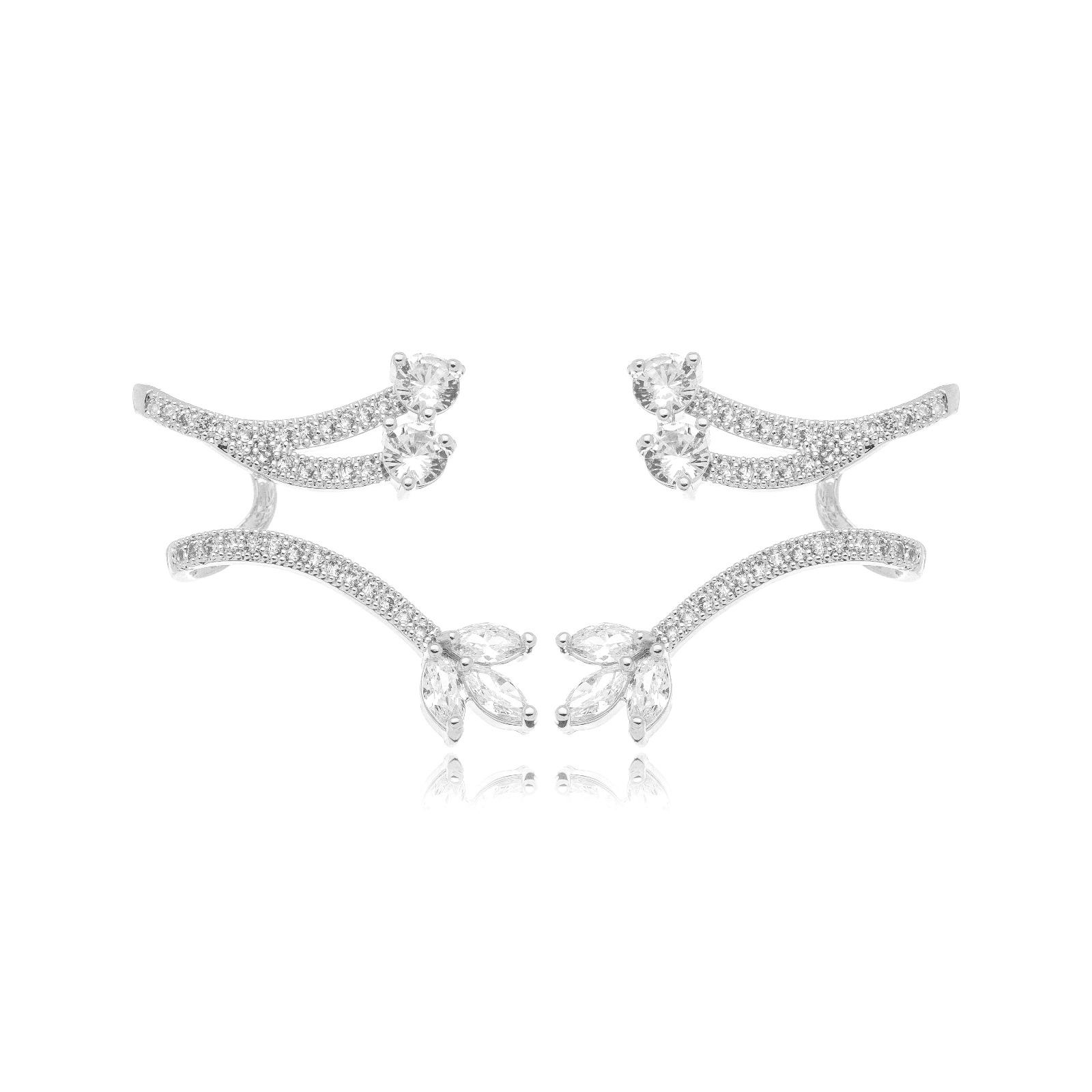 Brincos ear cuff banho de ródio cravejados com zircónias