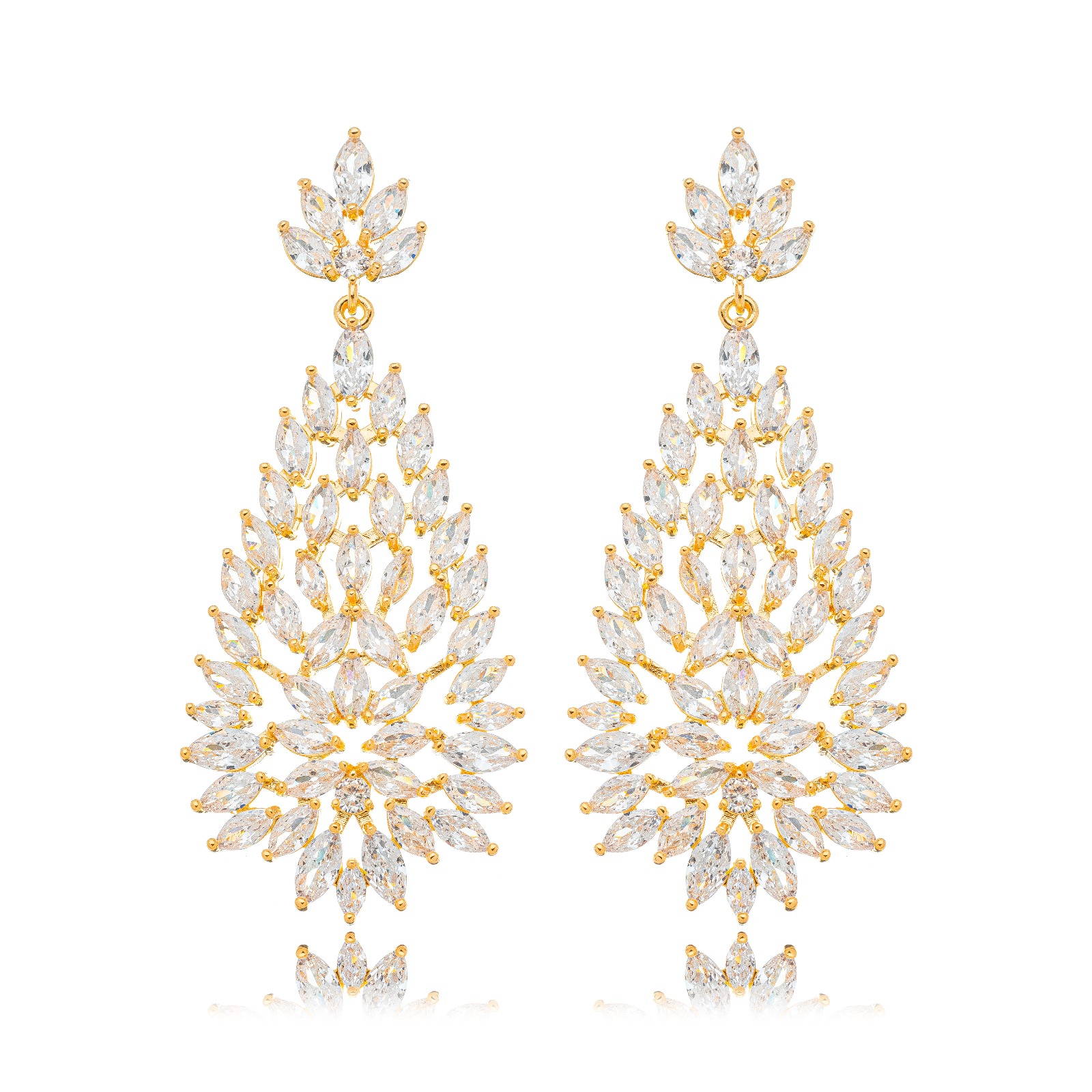Brincos grandes banho de ouro com cristais
