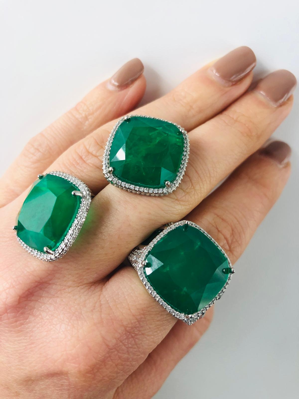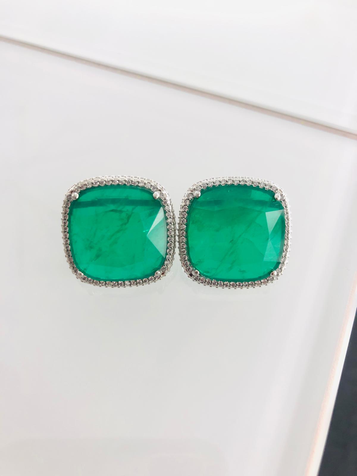 brincos banho de ródio com pedra fusion esmeralda cravejados de zircónias