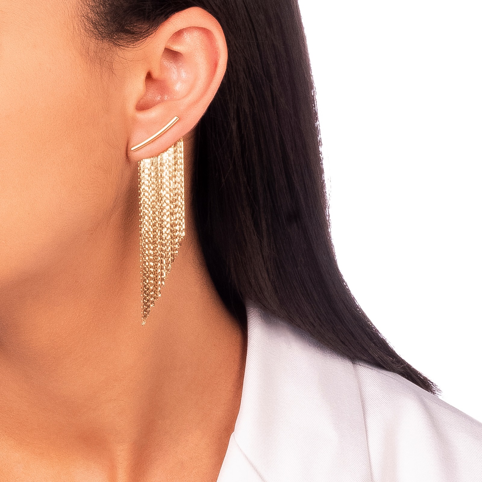 REF: 100756 Categorias: Acessórios de festa, Brincos Etiquetas: Banho Ouro, Brincos, brincos compridos, festa