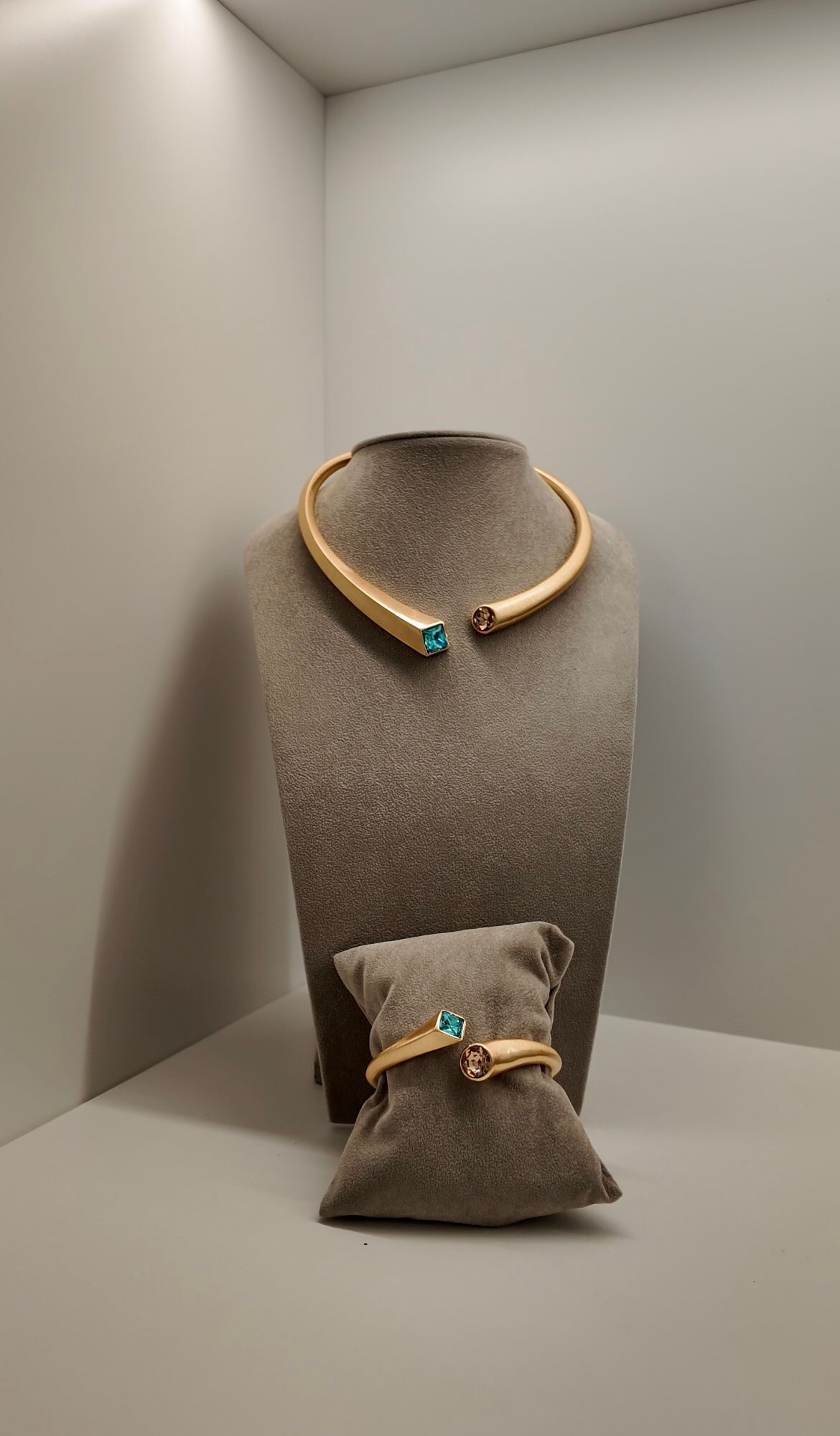 colar rígido banho de ouro acetinado com pedras semipreciosas